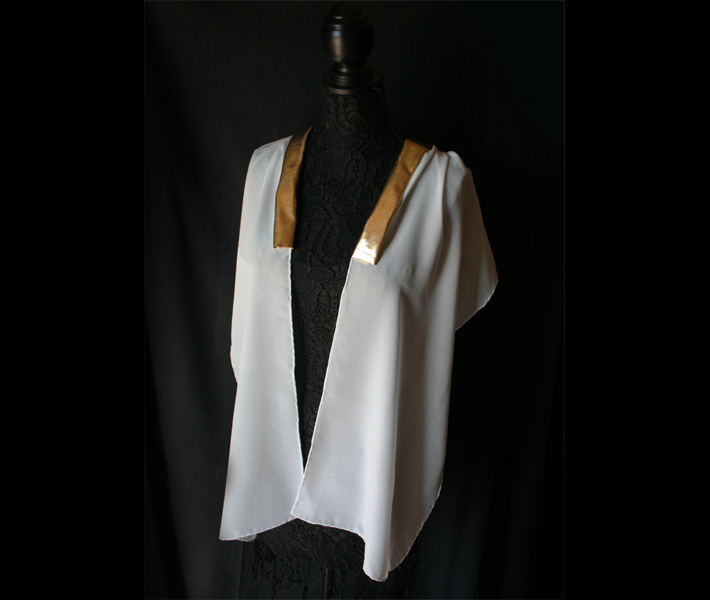 Linen Poncho with Gold Neckline