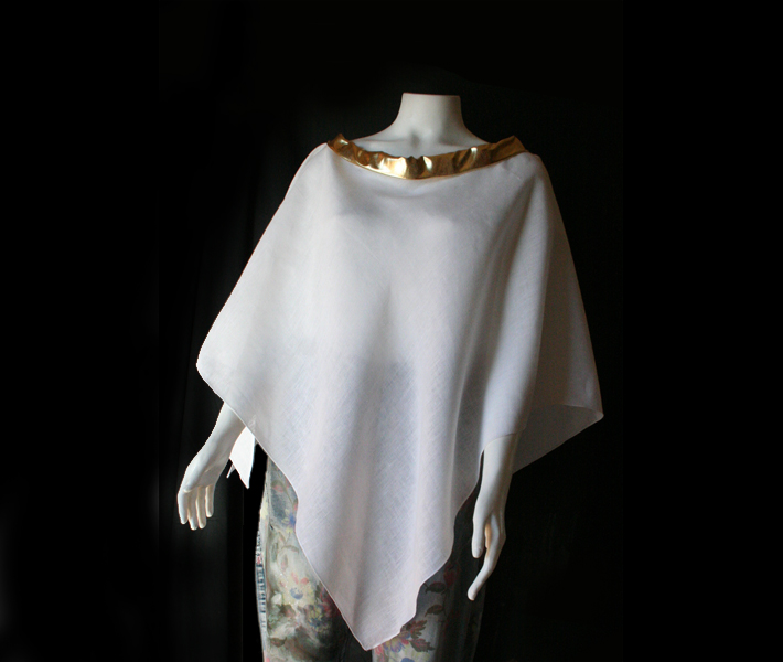 Linen Poncho with Gold Neck