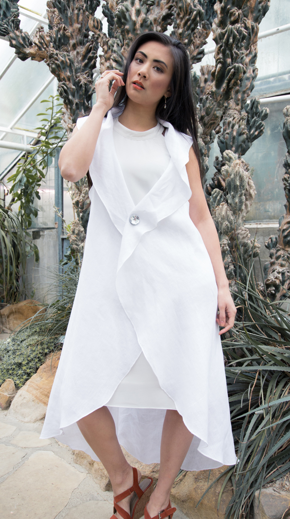 $20.00 CUSTOMIZE VISUALLinen Waterfall Coat Button Detail