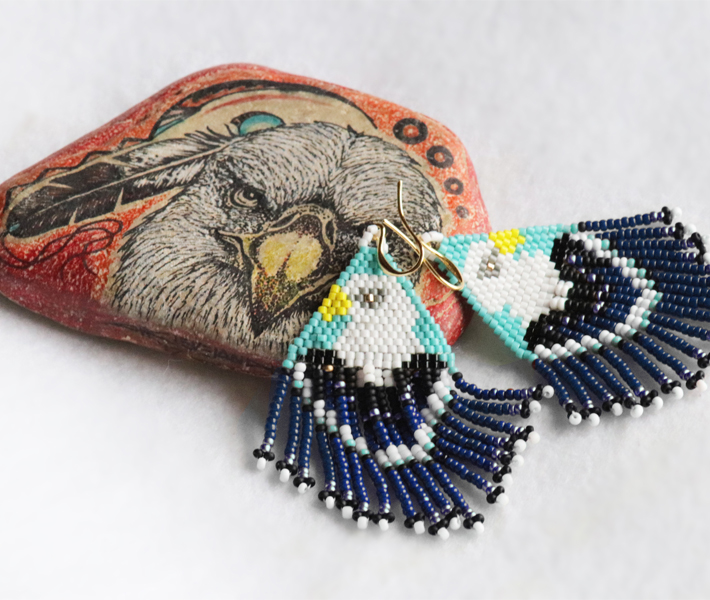 About the artist: Cherokee-descent Nicole S. currently makes her home in Greenfield, Indiana, where she is proud mother and grandmother to her children. Beading is in her blood and naturally a favorite past time, just as it was for many generations before. Nicole has suffered from Parkinson disease since 1992 but the shake of fingers cannot deter her from creating beauty. While it may take much longer than a healthy person, beautiful arts will come to completion with loving care.