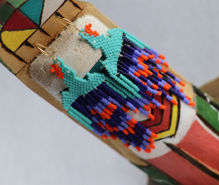 About the artist: Cherokee-descent Nicole S. currently makes her home in Greenfield, Indiana, where she is proud mother and grandmother to her children. Beading is in her blood and naturally a favorite past time, just as it was for many generations before. Nicole has suffered from Parkinson disease since 1992 but the shake of fingers cannot deter her from creating beauty. While it may take much longer than a healthy person, beautiful arts will come to completion with loving care.