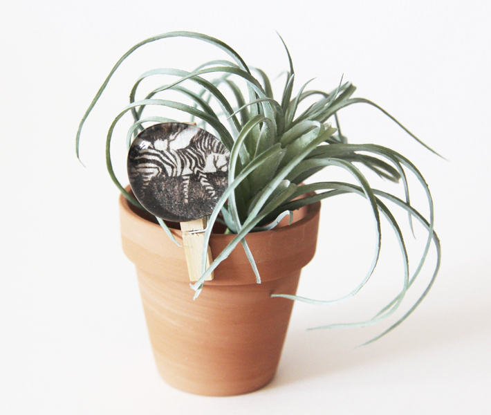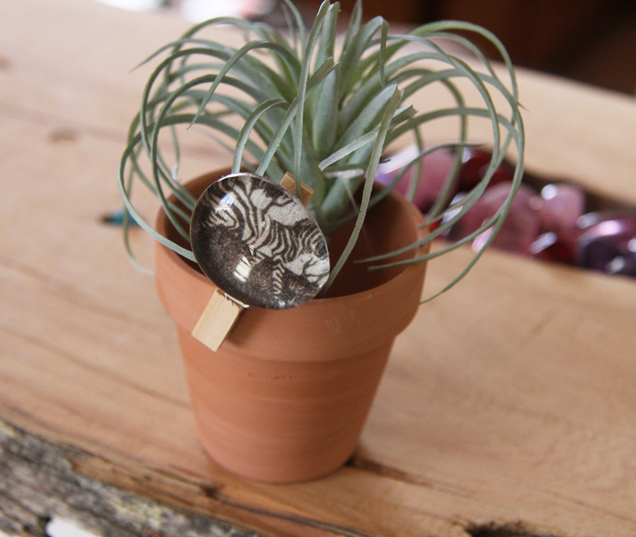 Display your art on a glass cabochon on a mini pot you can fill with any number of things, besides an air  or succulent plant. This gift has a lot of heart without costing you an arm and leg.