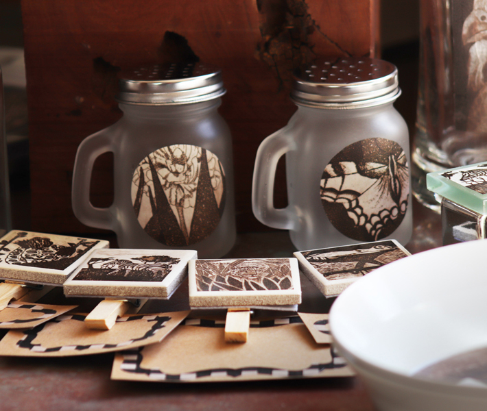 Enjoy this economical alternative to sublimation dye printing where we use a waterslide method to affix the art onto a pair of salt and pepper shakers. Avoid soaking in water for a long time and product will last a long time if admired under mostly dry conditions.