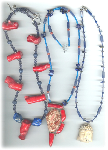 #1: Red coral, iolite, blue sponge coral, silver: $185