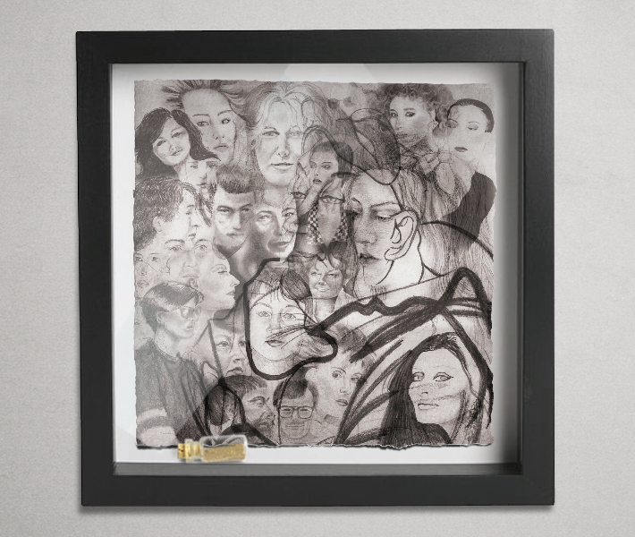 This artistic expression of “Many Faces” comes in a ten-inch square glass shadow box with customized sand in a glass vial “time-capsule” paraphernalia. Images are printed with archival quality inks that provide a vibrant gamut and accurate color resolution. The acid-free, cold pressed watercolor paper gets torn by hand to yield deckled-edges, for a true fine art appearance. To view other available curio box paraphernalia, select the Designs > Shadow Box Elements tab in any blank designer template.