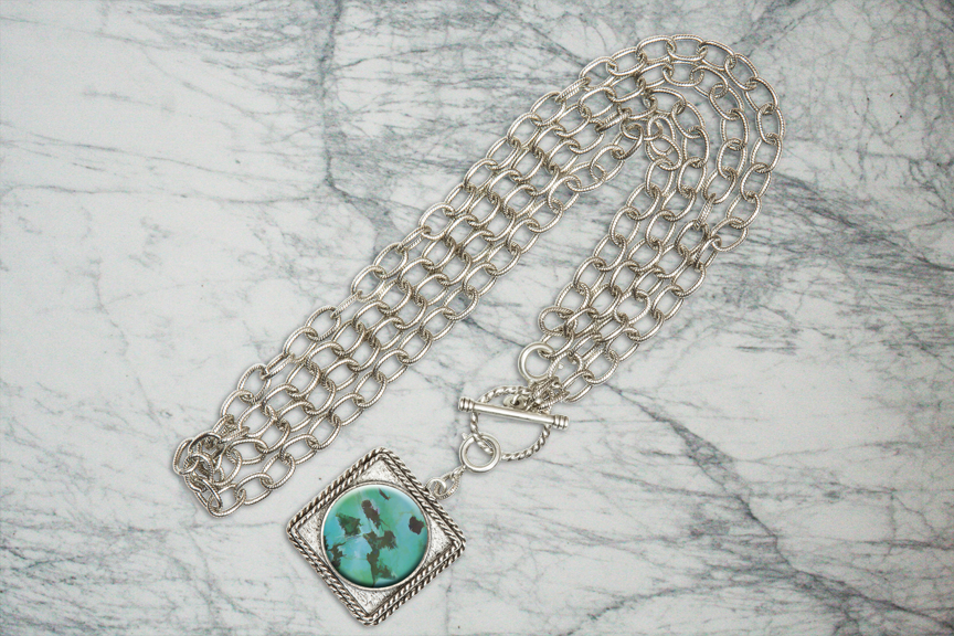 - Detailed trimmed square base which holds a jewelry-finished round image pendant magnet