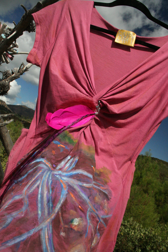 Either paint directly on the fabric and then send us pictures in a specified way or send in the painted garment or we will take pictures for you. Then, reproduce the art on a wide variety of fashion products which we will paint-decorate with noticeable brush strokes, each resulting in original art.