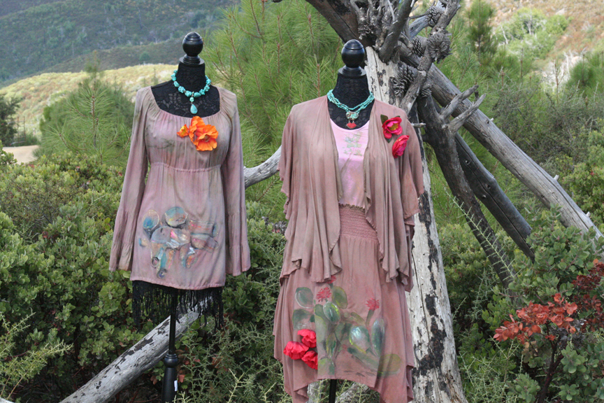 Either paint directly on the fabric and then send us pictures in a specified way or send in the painted garment or we will take pictures for you. Then, reproduce the art on a wide variety of fashion products which we will paint-decorate with noticeable brush strokes, each resulting in original art.