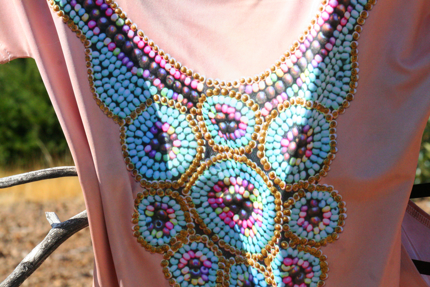 Is this an original, painted showcase garment or a reproduction? We innovated a way of painting directly on the fashions of your choice, then reproduce it to look like original art. Either paint directly on the fabric and then send us pictures in a specified way or send in the painted garment or we will take pictures for you. Then, reproduce the art on a wide variety of fashion products which we will paint-decorate with noticeable brush strokes, each resulting in original art. More Info.