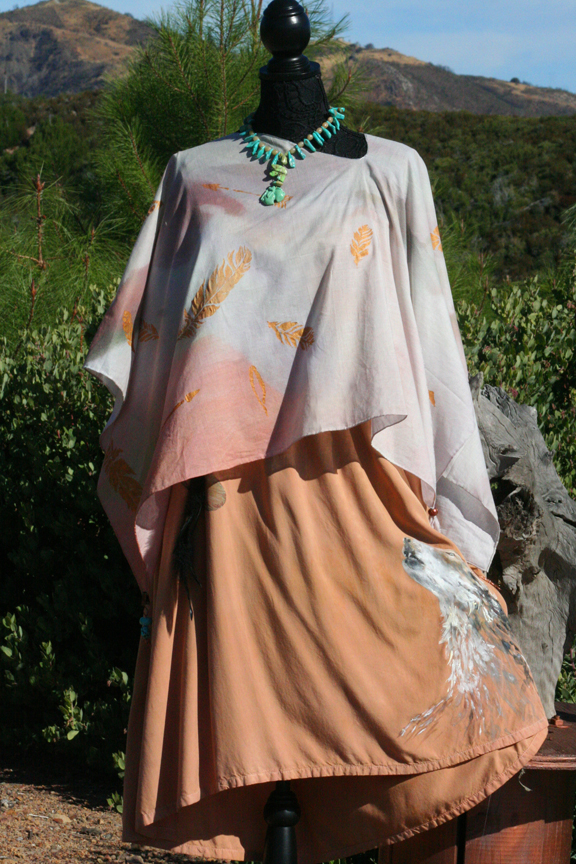 Is this an original, painted showcase garment or a reproduction? We innovated a way of painting directly on the fashions of your choice, then reproduce it to look like original art. Either paint directly on the fabric and then send us pictures in a specified way or send in the painted garment or we will take pictures for you. Then, reproduce the art on a wide variety of fashion products which we will paint-decorate with noticeable brush strokes, each resulting in original art. More Info.