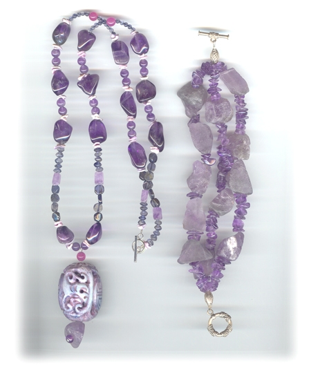 #1: Sugilite, sebu shell, charoite, lavendar jade, amethyst, silver: $105