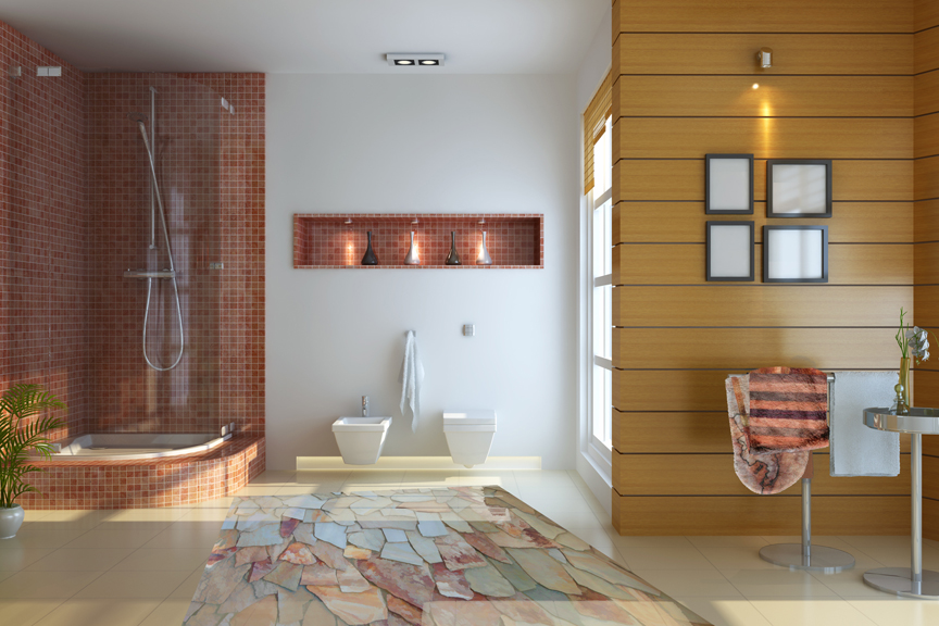 3d render interior of modern bathroom