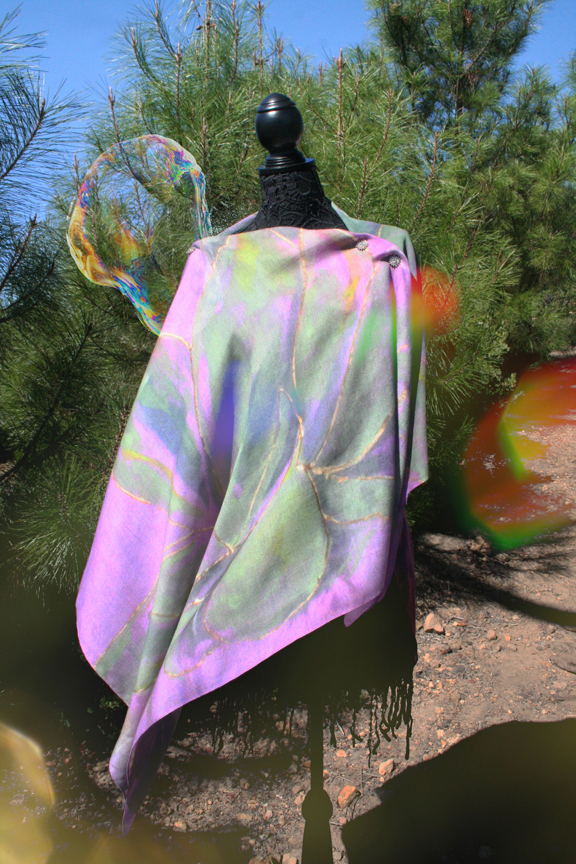 Is this an original, painted showcase garment or a reproduction? We innovated a way of painting directly on the fashions of your choice, then reproduce it to look like original art. Either paint directly on the fabric and then send us pictures in a specified way or send in the painted garment or we will take pictures for you. Then, reproduce the art on a wide variety of fashion products which we will paint-decorate with noticeable brush strokes, each resulting in original art. More Info.
