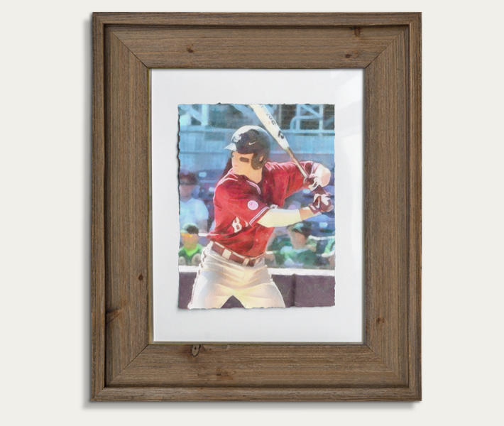 Trained artists paint the final image in a manner that is reminiscent of traditional watercolor techniques, rendering it virtually indistinguishable from expensive commissions. Arriving at your door, is a professionally mounted barn wood frame with a clear glazing that is crack resistant during transit.