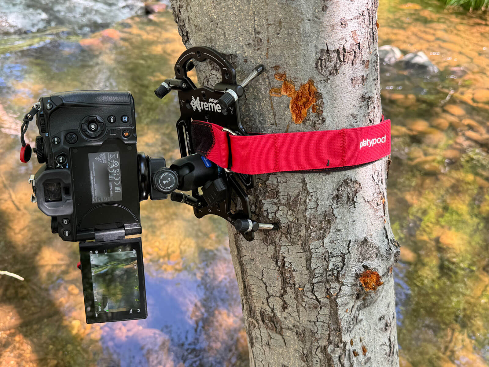 I wanted to stay lightweight while wandering the banks. That called for packing the Platypod gear. I used the Platypod eXtreme as the base. A Benro IN00 ball head offers plenty of support for the micro 4/3rds OM 1 camera (I linked to the OM1 Mark II cause it’s just a little more with deep features) with the M.Zukio 12-100mm f/4.0 Pro lens (24-200 full frame equivalent field of view). When I needed more height a velcro strap and a tree worked well.
