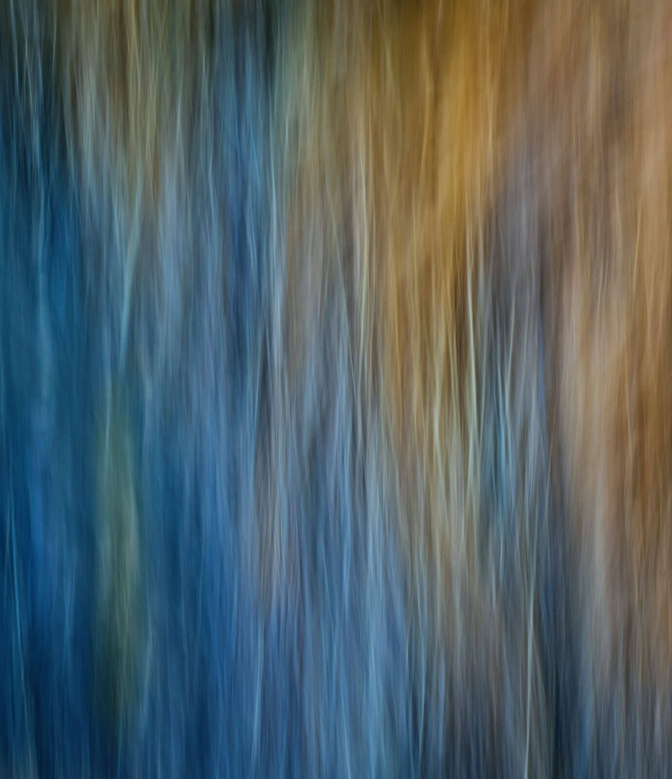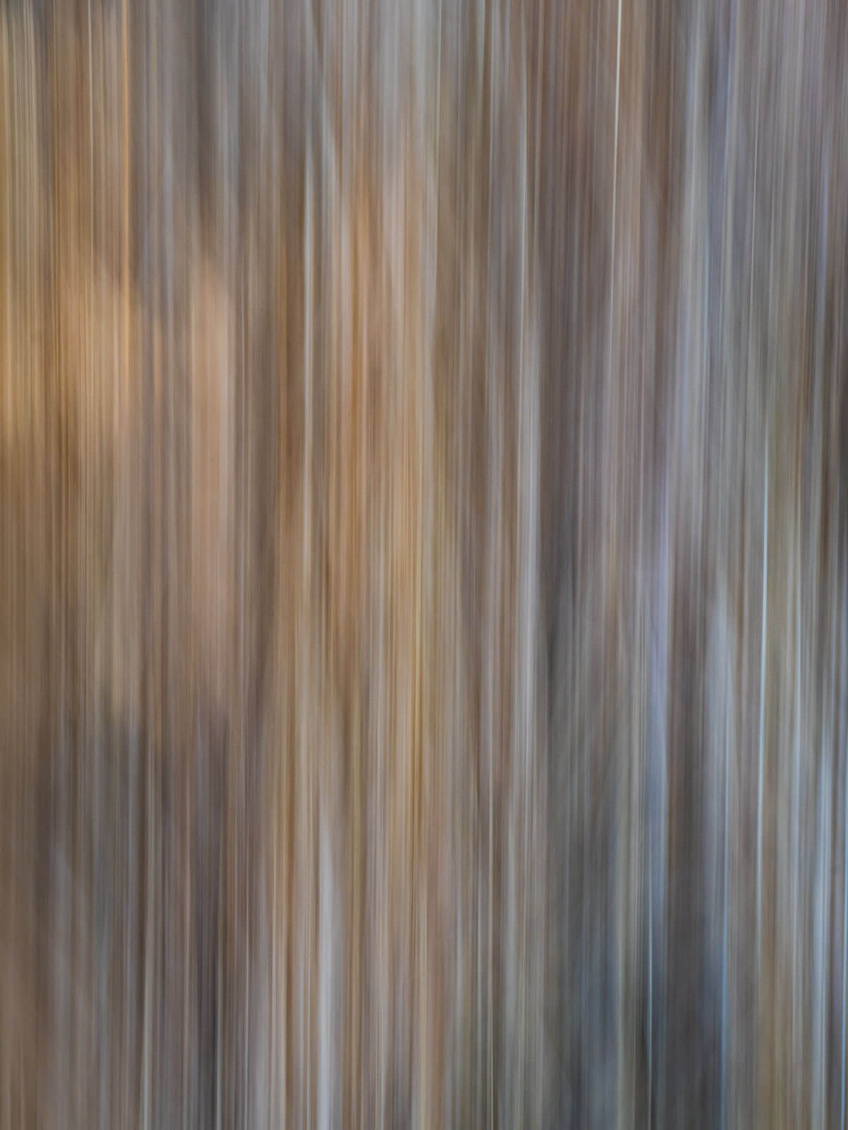 Intentional camera movement can allow for creative interpretation of a scene. I lowered the shutter speed to purposely blur the scene. In this case, it was 1/6th of a sec. In order to get consistent blur throughout, I started moving the camera before pressing the shutter button. After a number of passes at different speeds of camera movement, I ended up working with these two in post using Photoshop. I applied some additional contrast, color adjustment, and dodging and burning.