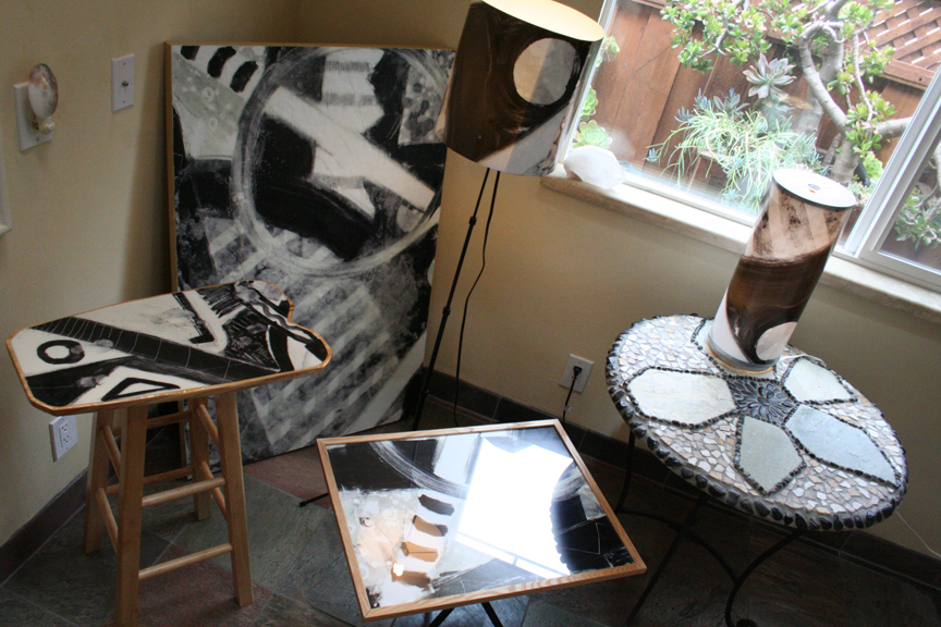 Small spaces can look larger if designed with a related design and color theme. Give old furniture items a makeover with furniture wraps and designs from your portfolio or our extended exotic wood library found here. There are many designs to choose from. Turn a long Ikea Lack cofee table into a painting and ‘go wild’ with candle wax!